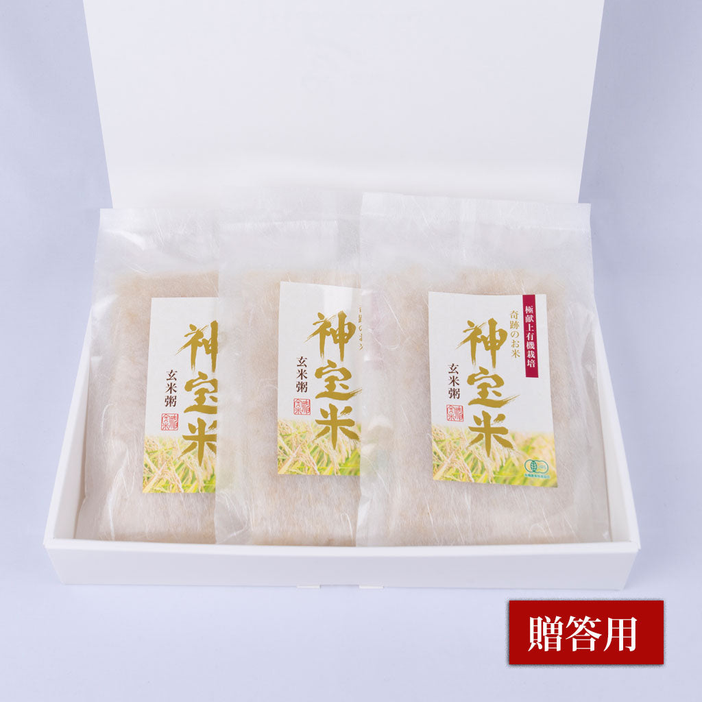 【贈答用】極献上有機栽培 奇跡のお米 神宝米 玄米粥(3袋入/6袋入)